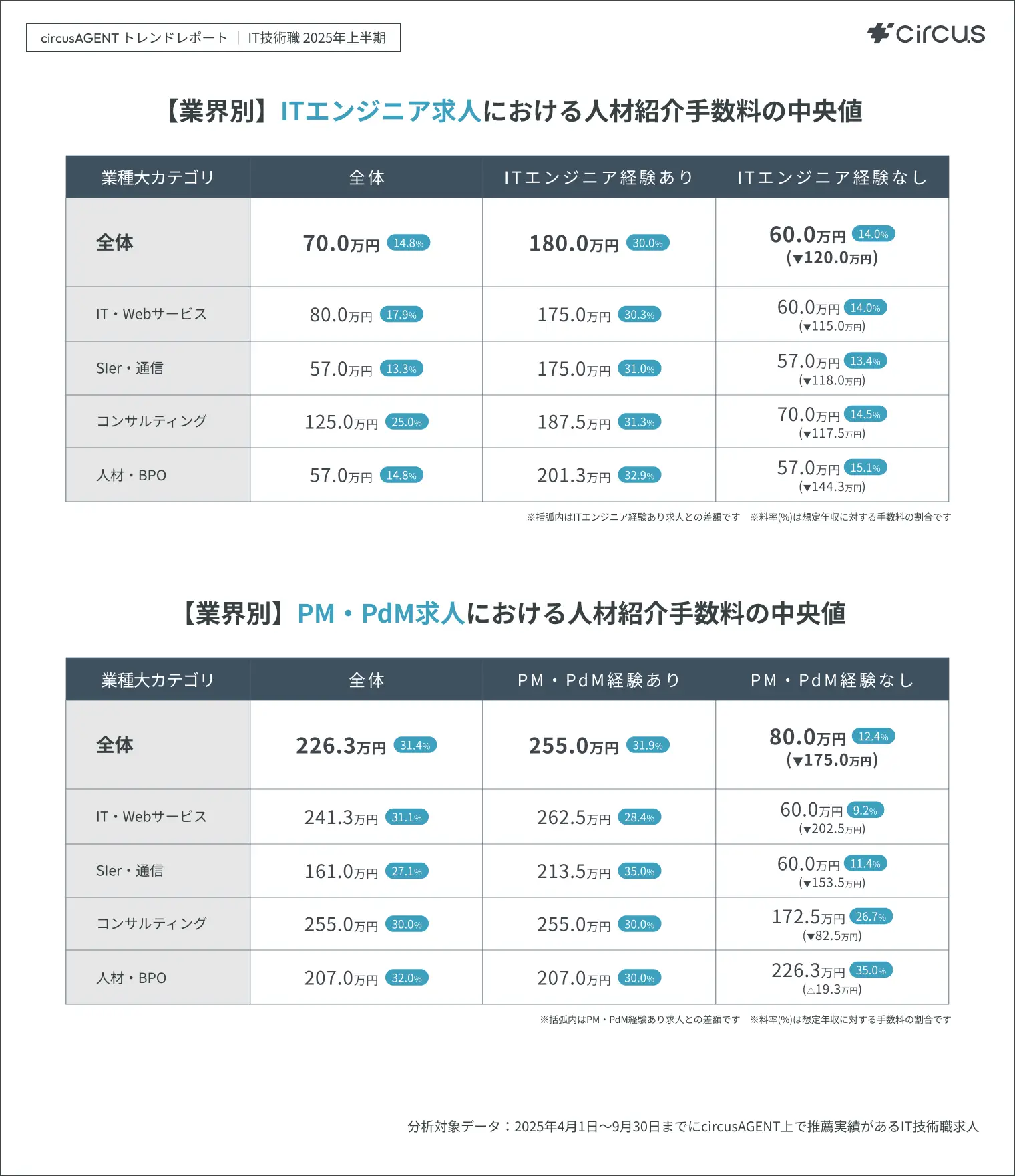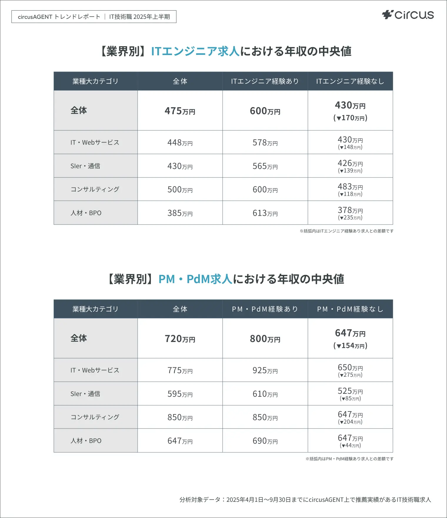 分析対象 circusAGENT上で2025年4月1日~9月30日の期間内に推薦実績があるITエンジニア、PM・PdM求人