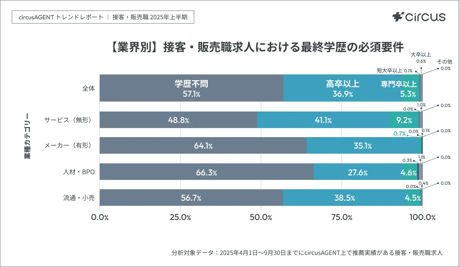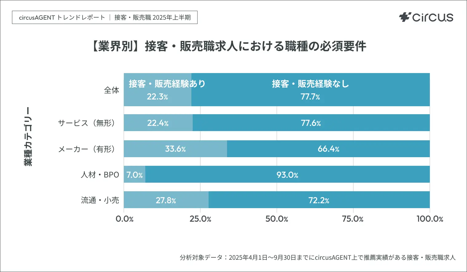 分析対象 circusAGENT上で2025年4月1日~9月30日の期間内に推薦実績がある接客・販売求人